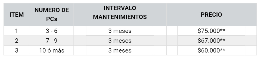 Mantenimiento correctivo: Se realiza respondiendo a un mal funcionamiento presentado en los equipos. Implica la detección de la falla y el reemplazo de piezas necesarias para poner en correcto funcionamiento el equipo contando con herramientas como helpdesk y asistencia remota y si es necesario ATES enviará personal para solucionar el problema. (Incluye el costo por cambio de piezas).