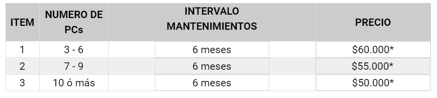 *Precio por computador. Contrato mínimo por 12 meses